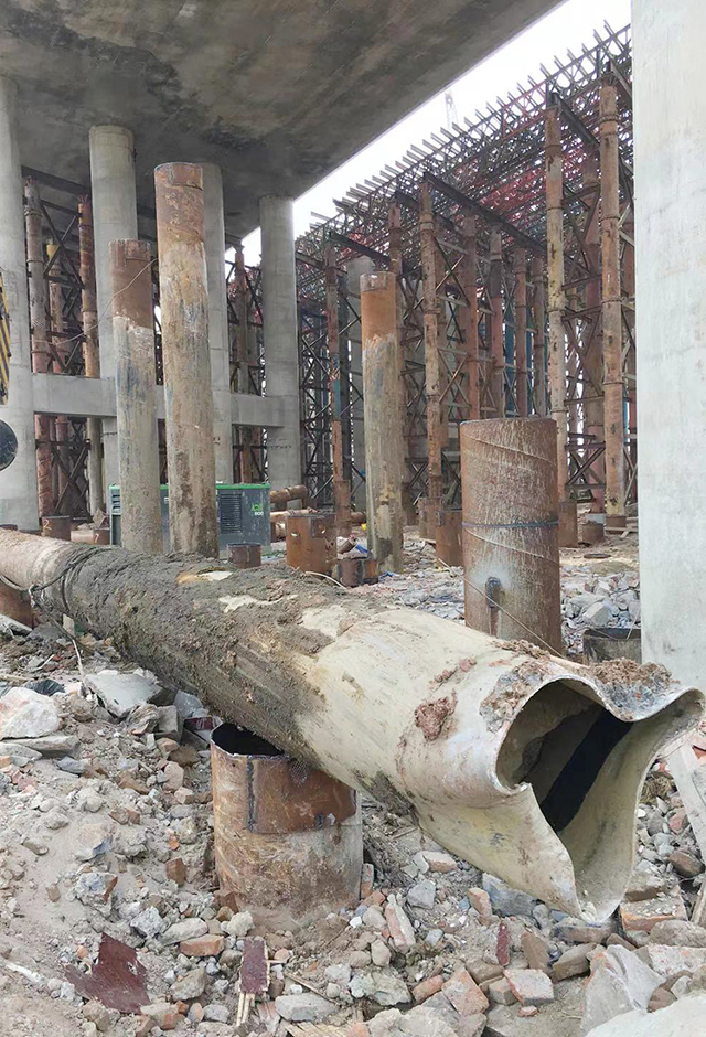 除了钢管桩的振打,ICE系列液压振动锤在钢管桩的拔出方面,包括栈桥拆除,表现也非常突出。国内外很多高难度的钢管桩拔除是我公司来完成的,比如钢管桩打入后底部变形喇叭口,我们的设备照样能全部拔出。(配几张青岛机场高速拔出变形的钢管桩图片)不管土壤条件恶劣还是桩身已变形,ICE设备都不会让您失望!